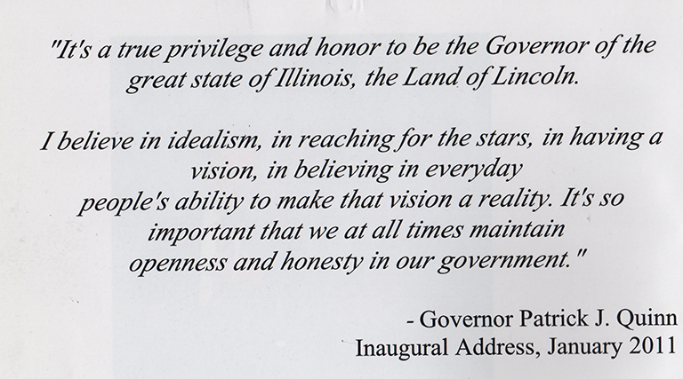 On January 29, 2009, then-Lt. Gov. Pat Quinn took the oath of office as Illinois Governor when the sitting Governor was impeached and removed from office. Illinois was in the midst of a triple crisis of government corruption at the highest level, budget instability, and economic collapse caused by the deepest recession since the Great Depression.