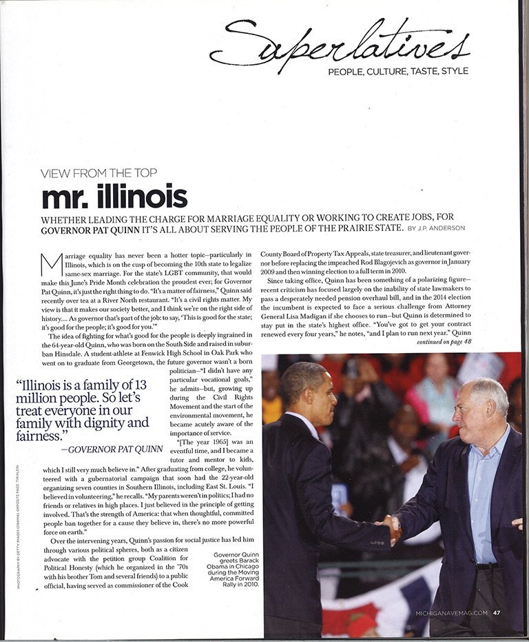 In addition, Gov. Quinn led passage and signed more progressive bills into law than any Governor in state history.